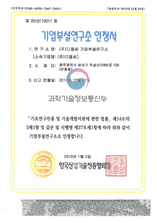 기업부설연구소 인정서