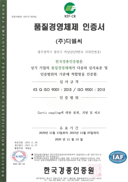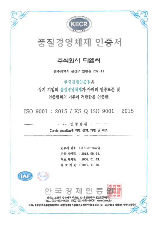 품질경영체제 인증서